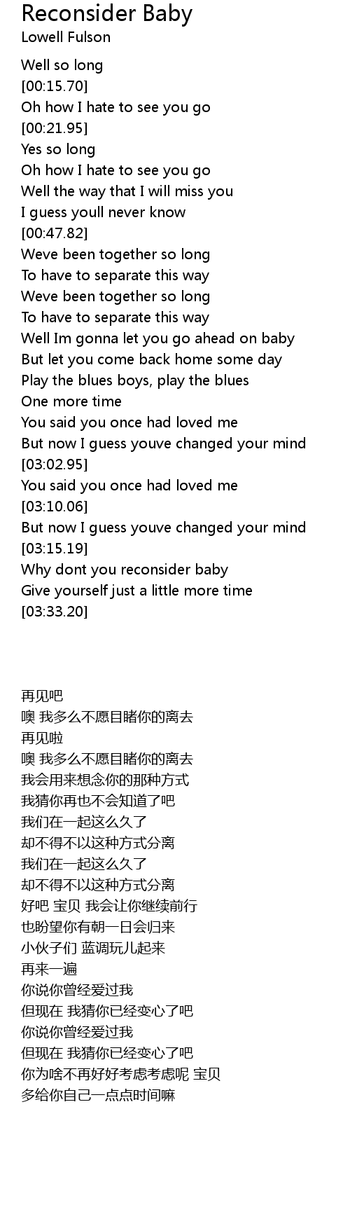 Why dont you reconsider baby |