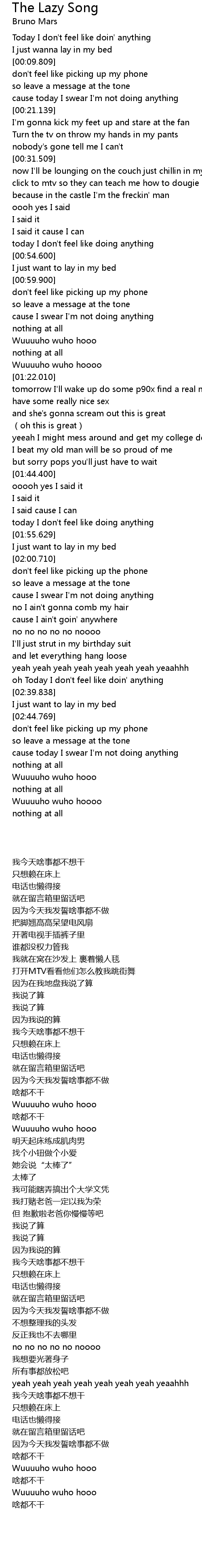 | [02:34.099] | oh Today I don't feel like doin' anything |