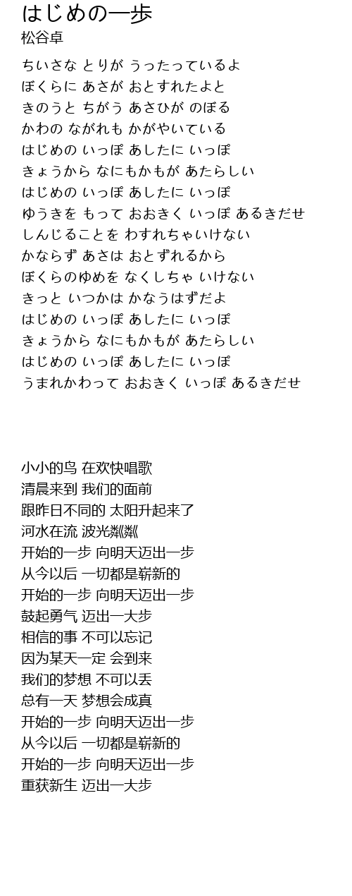 | [00:44.10] | はじめの いっぽ あしたに いっぽ |