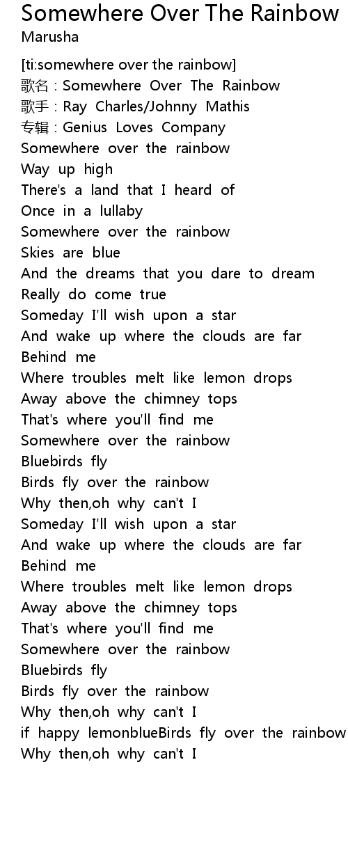 | [00:04.302] | gē míng: Somewhere Over The Rainbow |