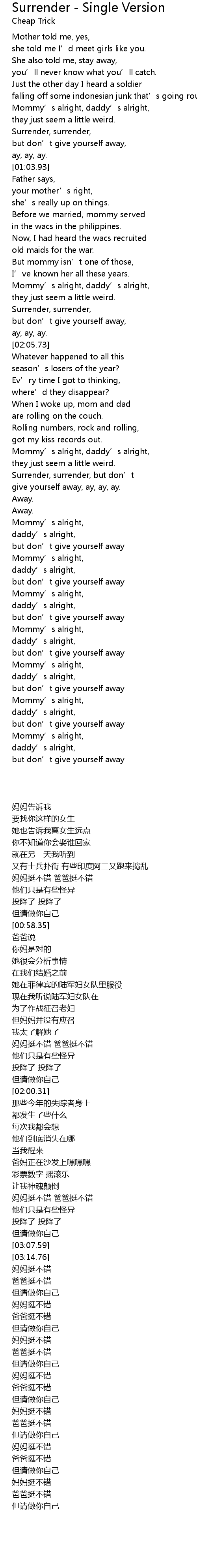 | [00:44.12] | Mommy' s alright, daddy' s alright, |