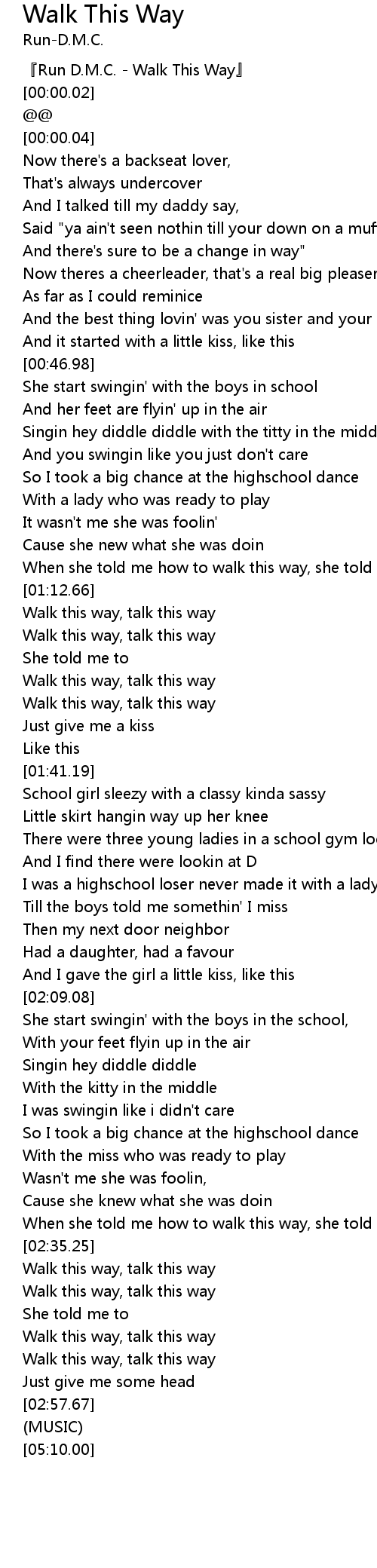 | [00:00.01] | Run D. M. C. Walk This Way |