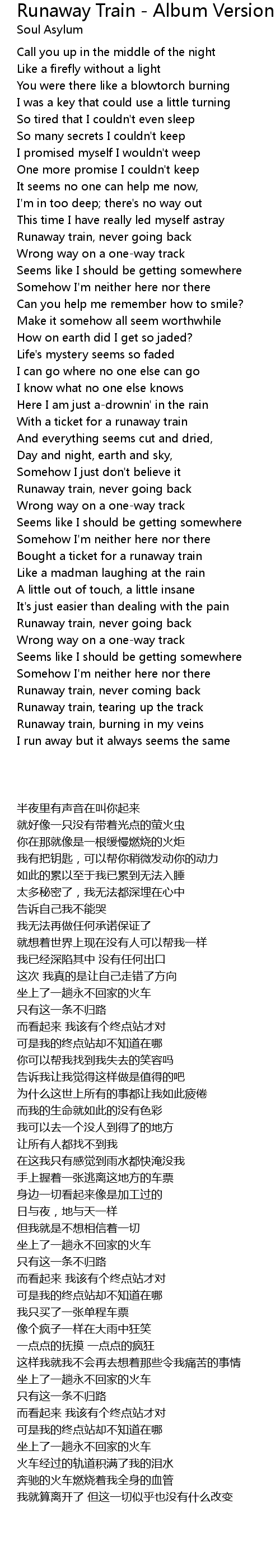 Song Runaway Train - Album Version