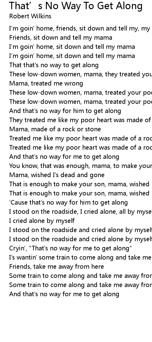 And that's no way for me to get along |