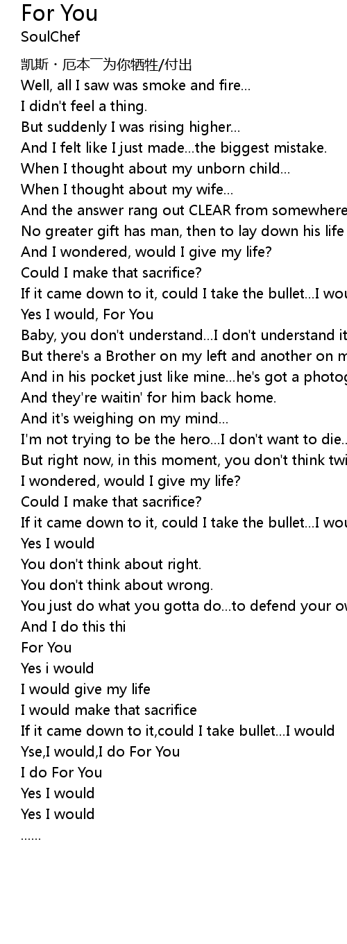 | [0:11.529] | 凯斯・厄本――为你牺牲/付出 |