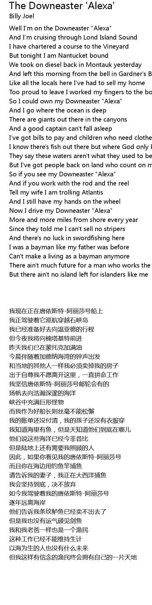 Well I'm on the Downeaster "Alexa" |