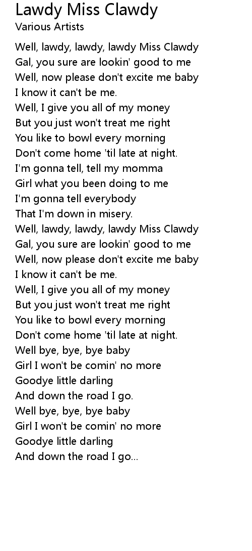 Well, lawdy, lawdy, lawdy Miss Clawdy |