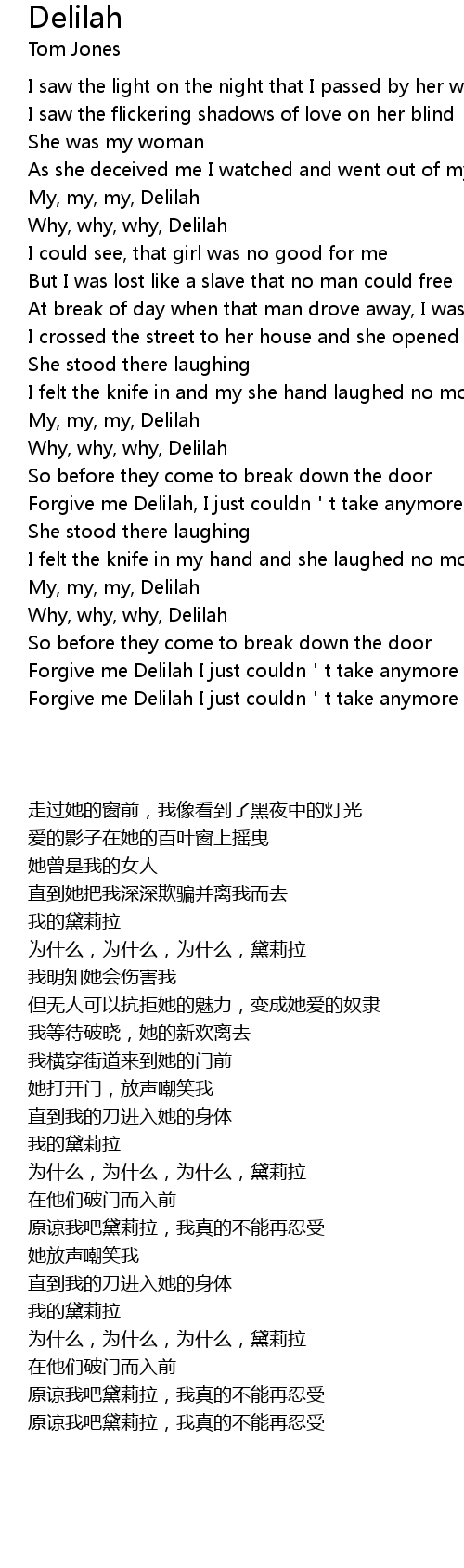 | [02:01.51] | Forgive me Delilah, I just couldn't take anymore |
