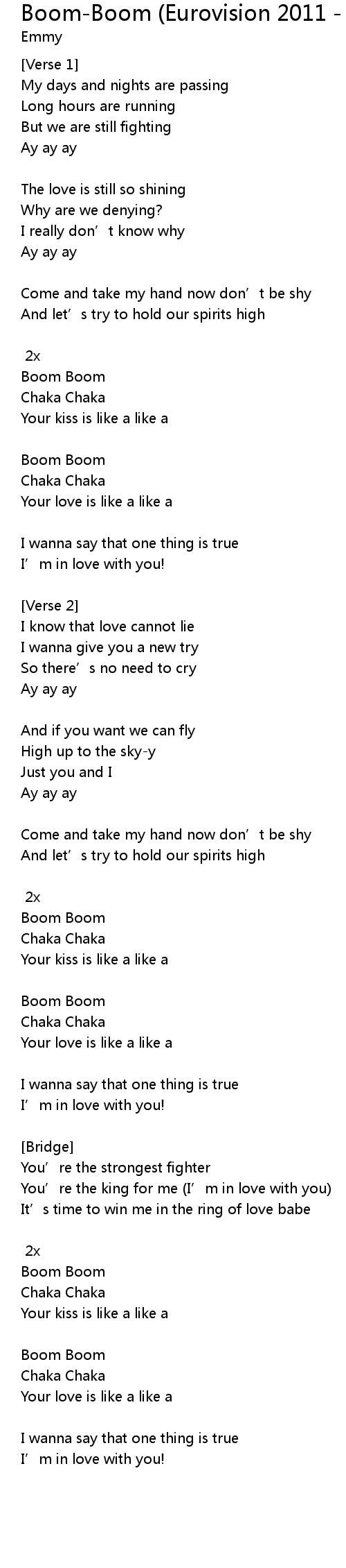 | Song | Boom-Boom (Eurovision 2011 - Armenia) |