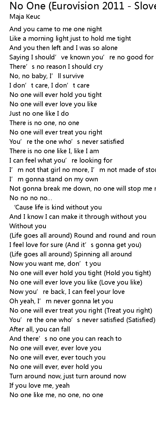 | Song | No One (Eurovision 2011 - Slovenia) |