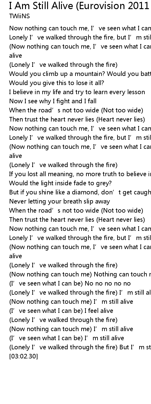 | [02:12.69] | (Now nothing can touch me, I’ve seen what I can be) I’m still alive |