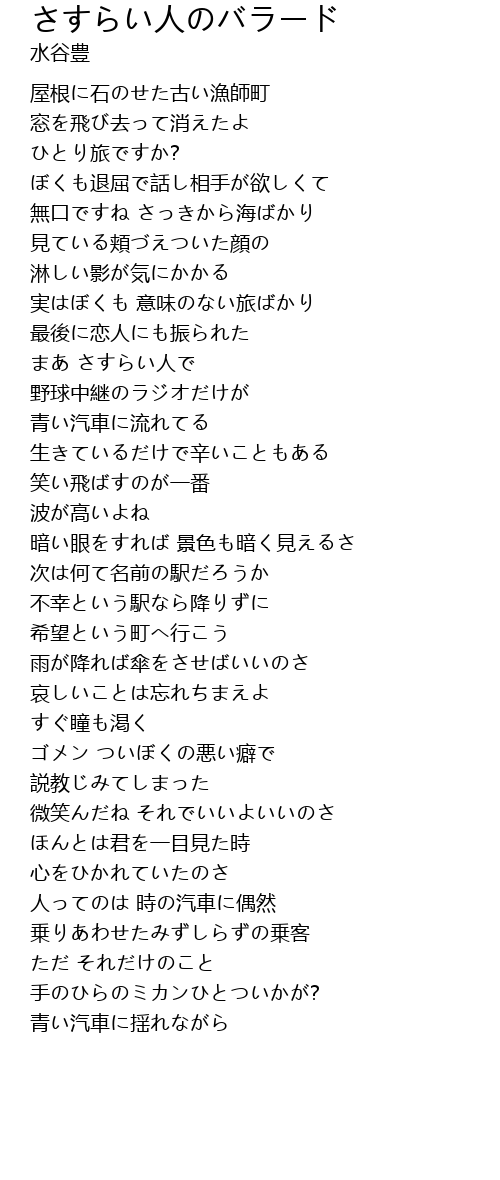 | Song | さすらい人のバラード |