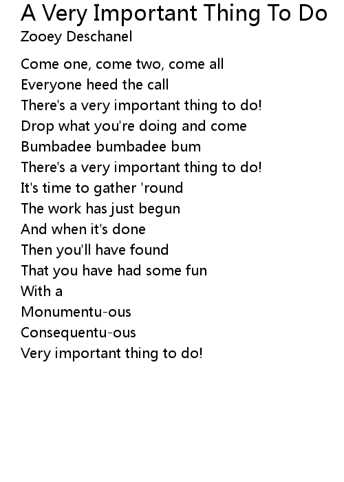 | Song | A Very Important Thing To Do |
