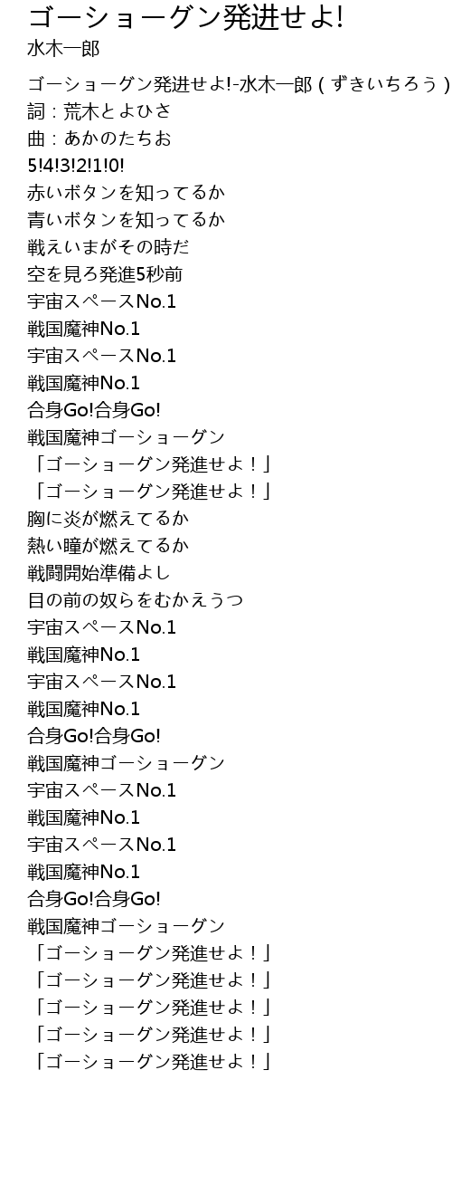 | [00:00.00] | ゴーショーグン発进せよ!-水木一郎(ずきいちろう) |
