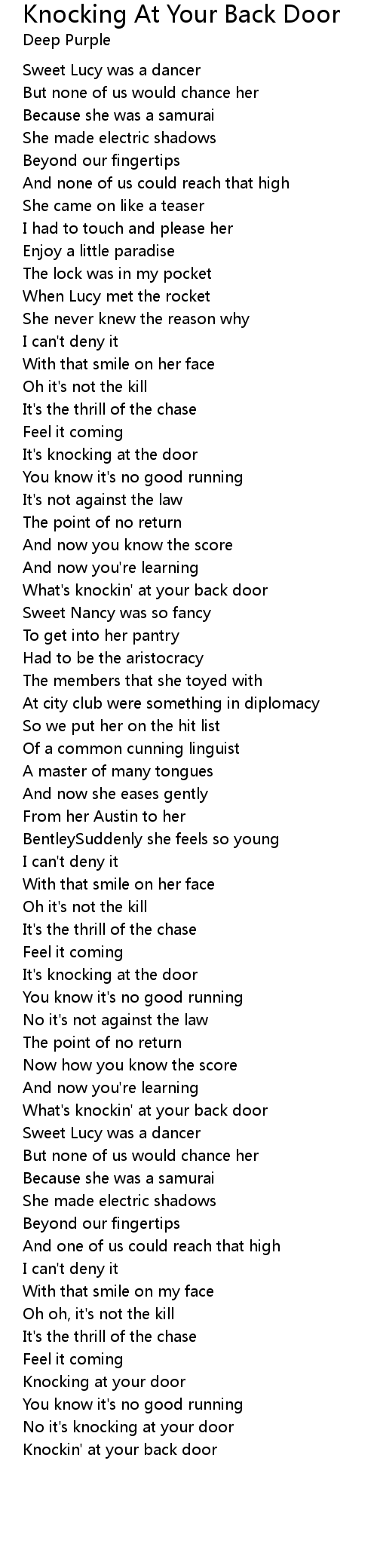 Knockin' at your back door |