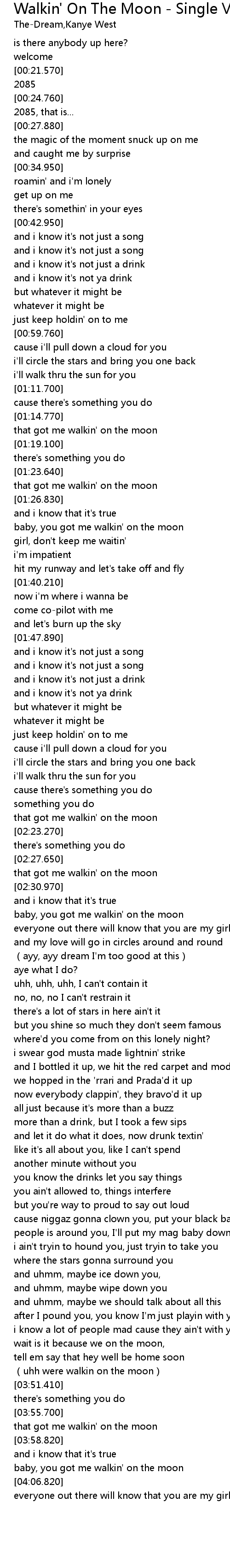 | [04:03.900] | baby, you got me walkin' on the moon |