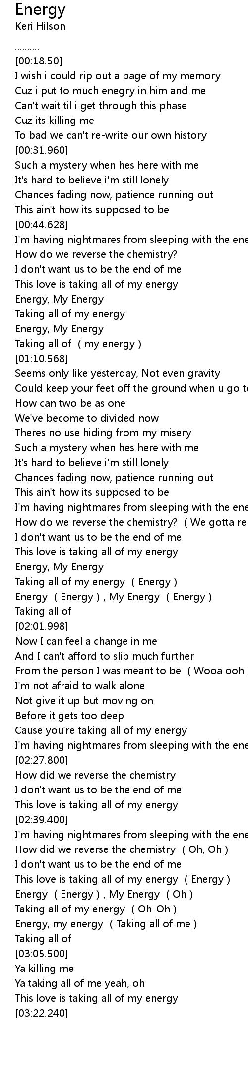 | [03:00.890] | Energy, my energy (Taking all of me) |