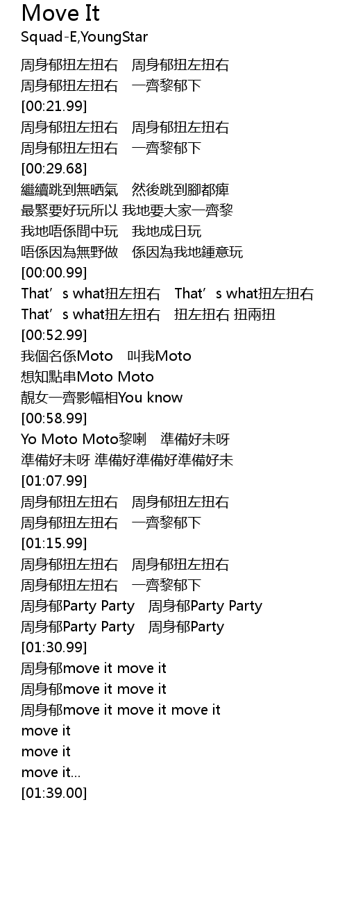 | [01:31.00] | 周身郁move it move it |