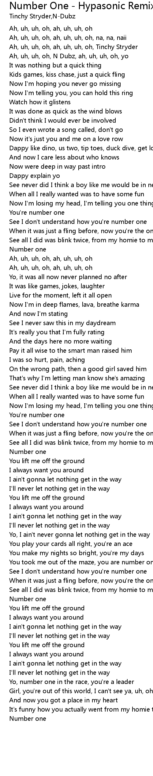 Ah, uh, uh, oh, ah, uh, uh, oh, Tinchy Stryder |