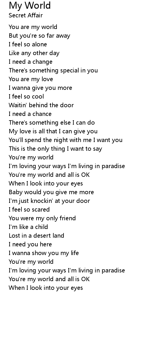 You're my world and all is OK |