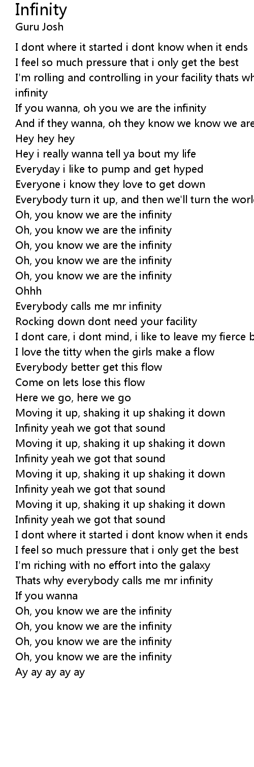 Everybody calls me mr infinity |