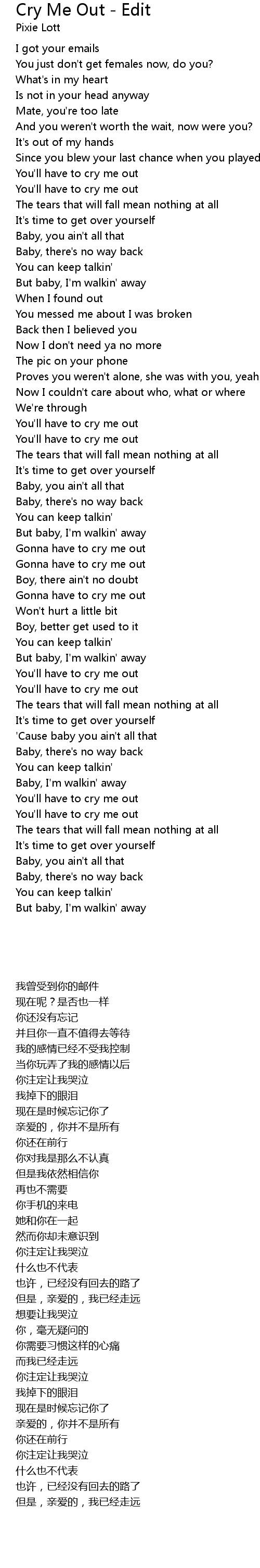 Gonna have to cry me out |