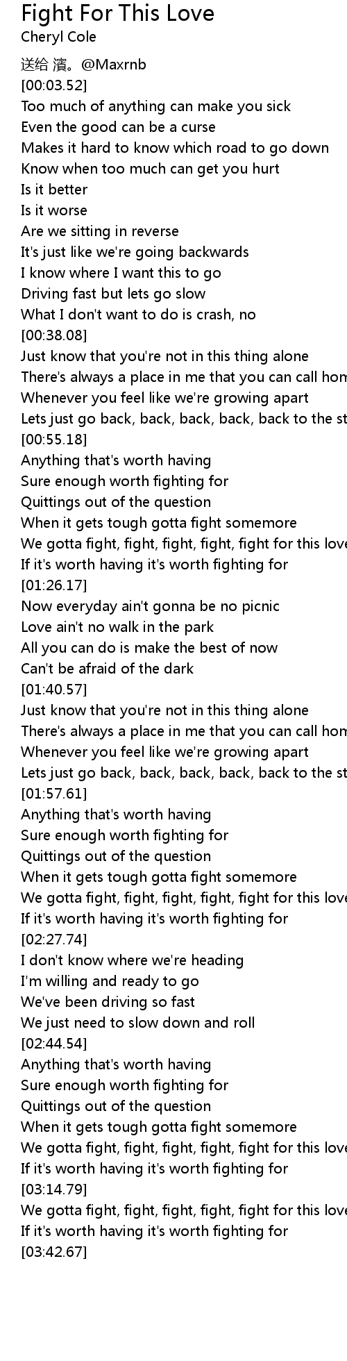 | [02:59.43] | We gotta fight, fight, fight, fight, fight for this love x3 |