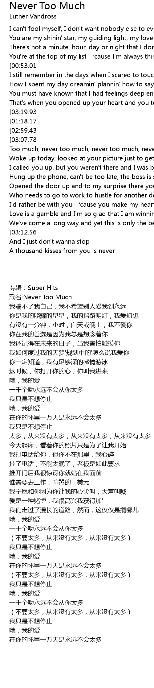 | [01:47.15] | Too much, never too much, never too much, never too much |
