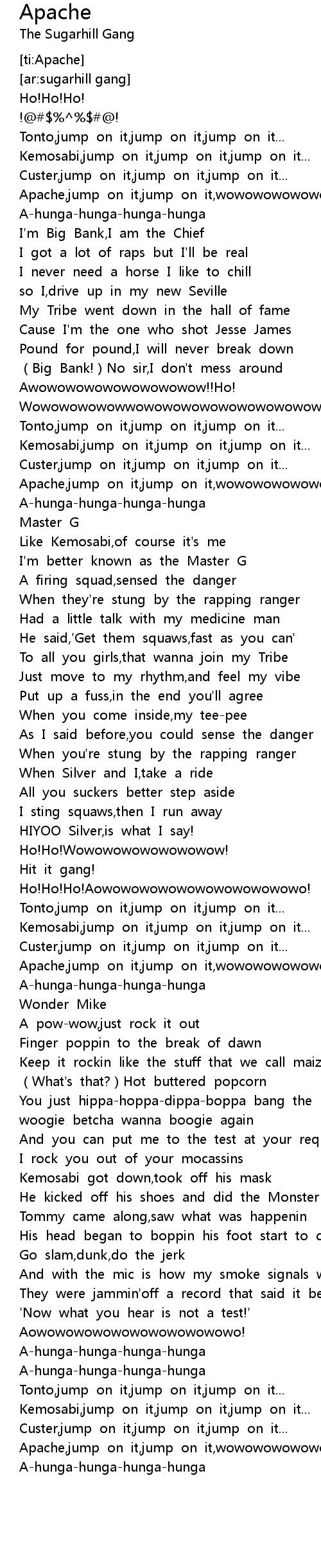 | [02:00.99] | Apache,jump on it,jump on it,wowowowowowowowowo!! |