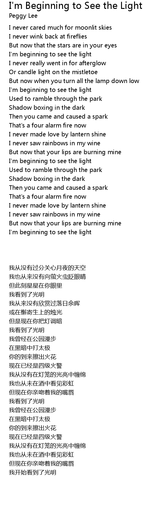 I'm beginning to see the light |