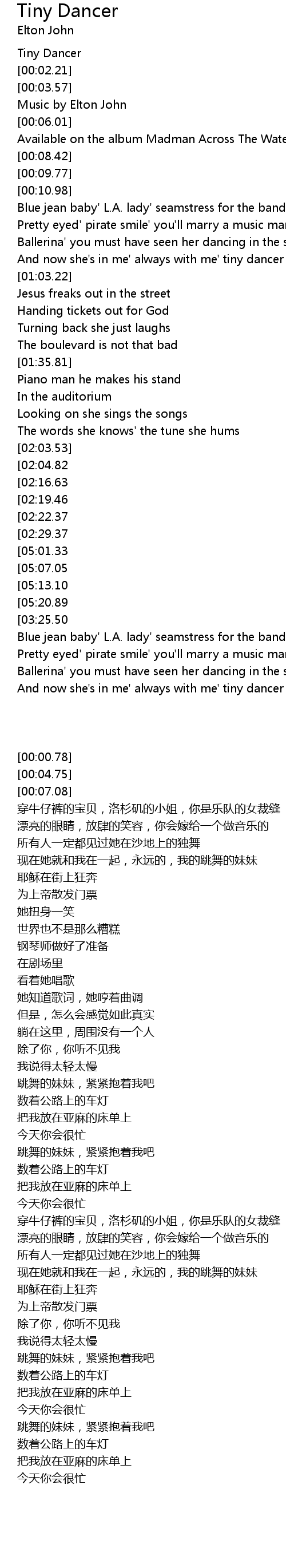 And now she's in me' always with me' tiny dancer in my hand |