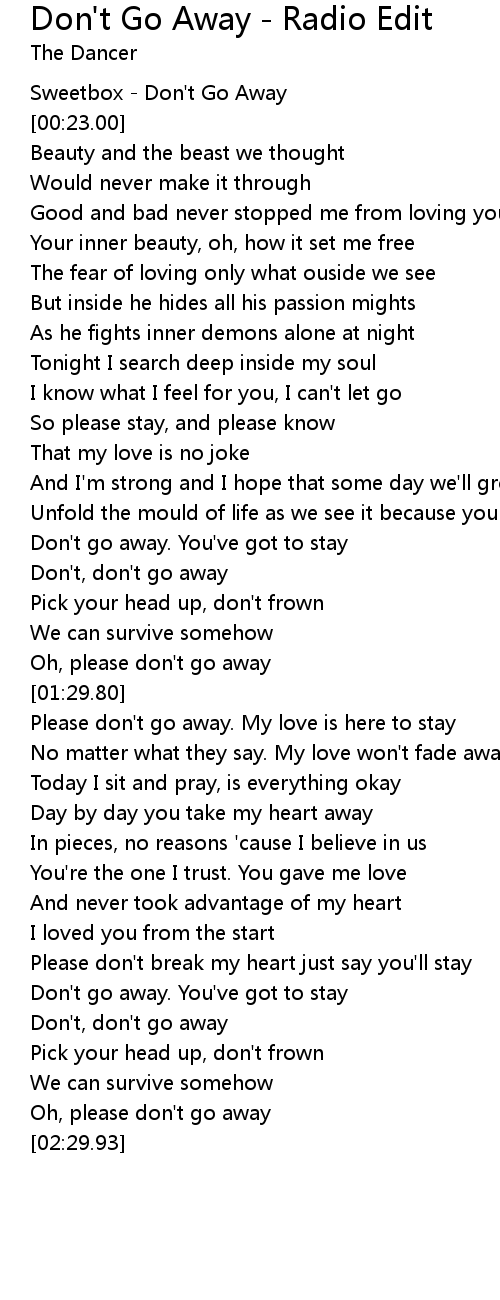 Don't, don't go away |