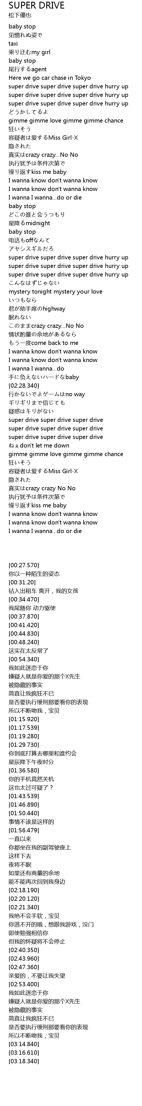 | [00:48.240] | super drive super drive super drive hurry up |
