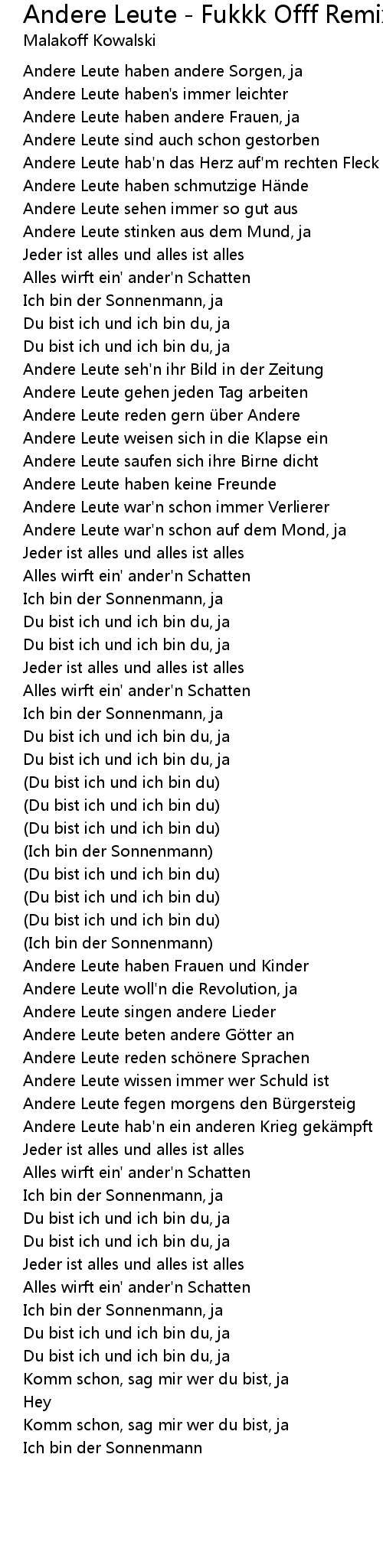 | Andere Leute hab' n das Herz auf' m rechten Fleck | |