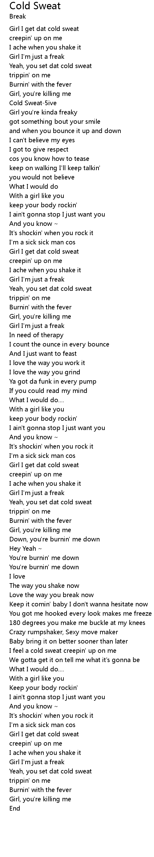 Girl I get dat cold sweat |