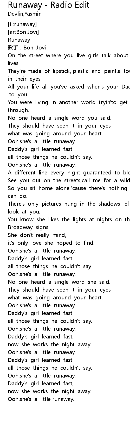 | [00:03.458] | Runaway |
