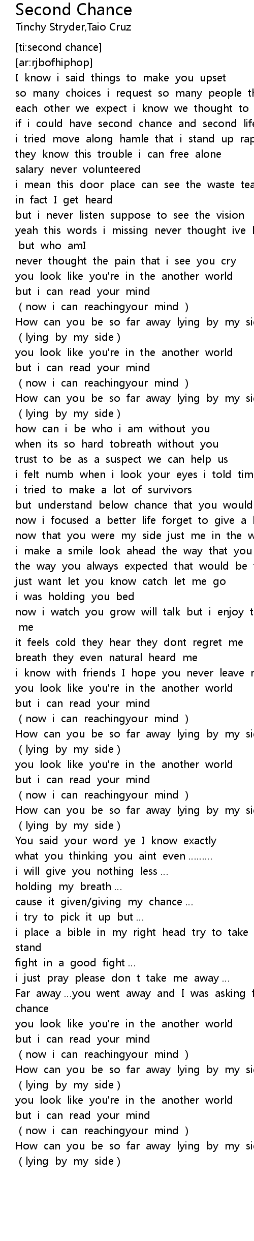 | [03:32.37] | Far away you went away and I was asking for the second chance |