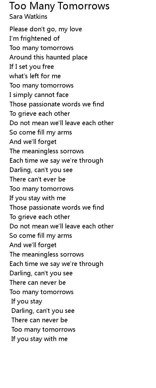 Too many tomorrows |