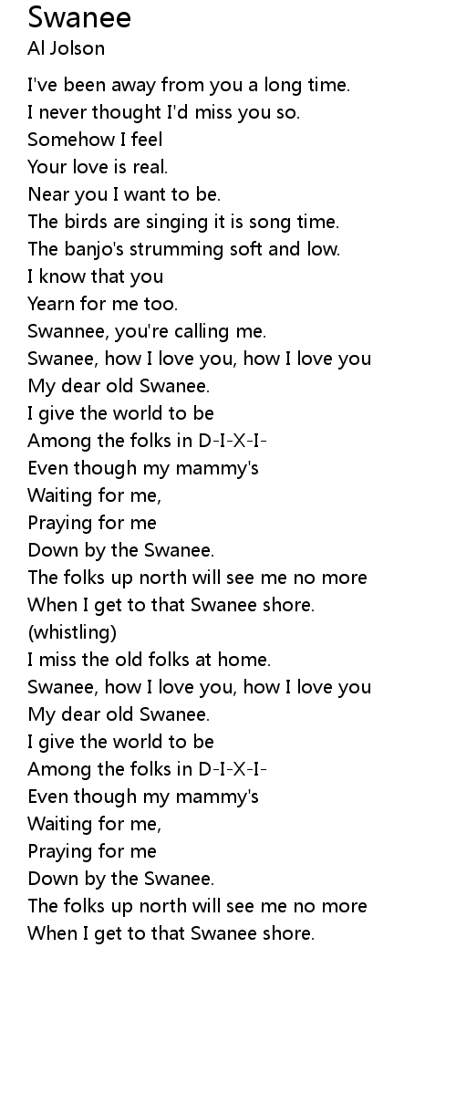 Swanee, how I love you, how I love you |