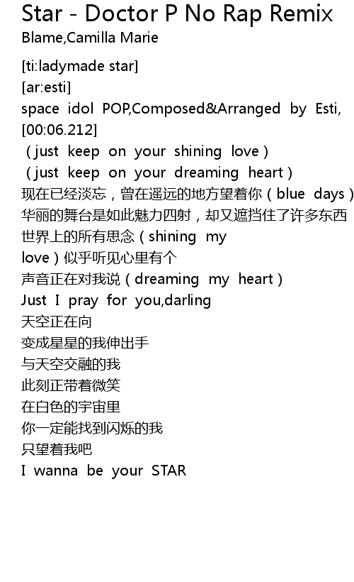 | [00:03.353] | space idol POP,Composed&Arranged by Esti, |