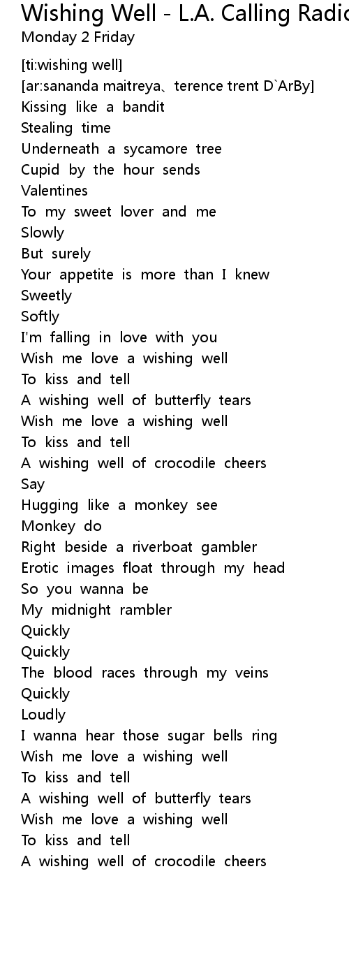 | Song | Wishing Well - L.A. Calling Radio Edit |