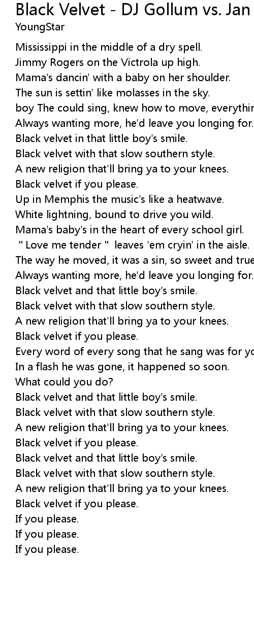 | Song | Black Velvet - DJ Gollum vs. Jan Wayne Radio Edit |