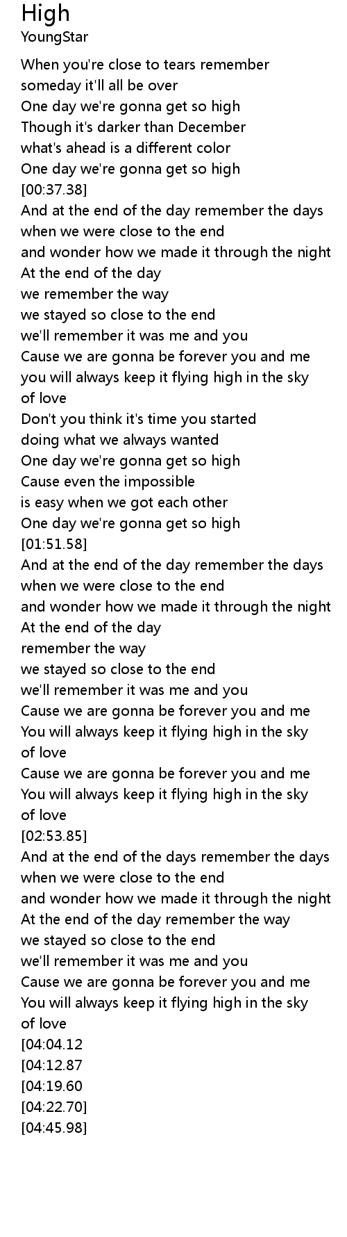 One day we're gonna get so high |