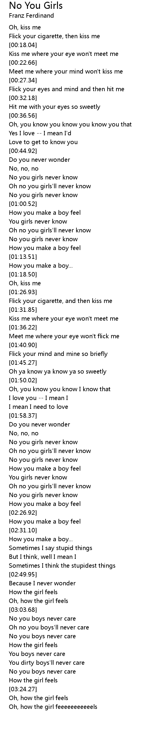 Oh no you girls'll never know |