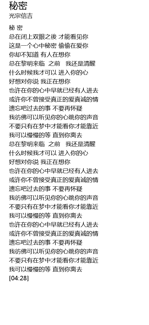 | [00:22] | 这是一个心中秘密 偷偷在爱你 |