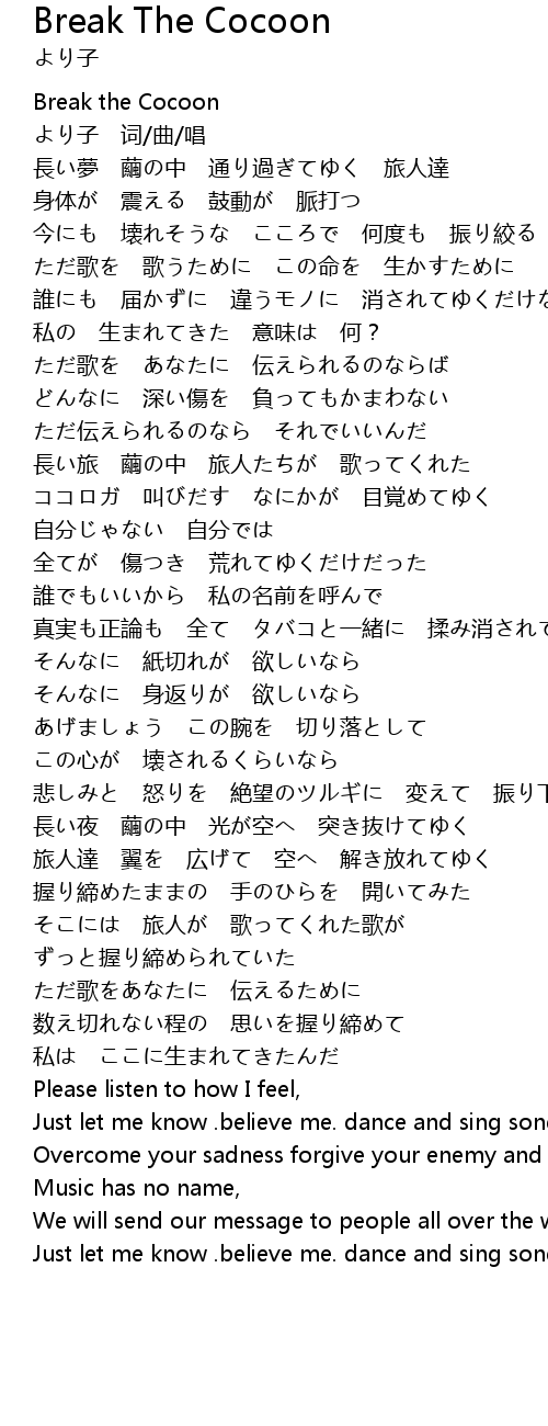 | [00:04.37] | Break the Cocoon |