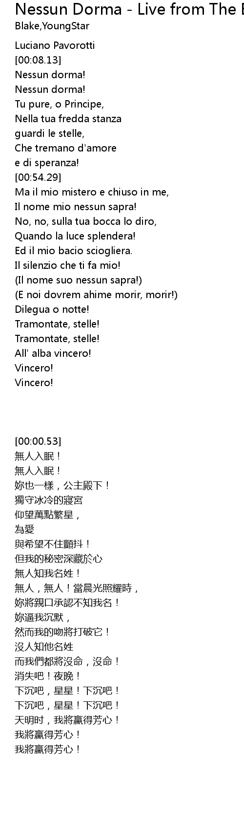 | [00:14.56] | Nessun dorma! |