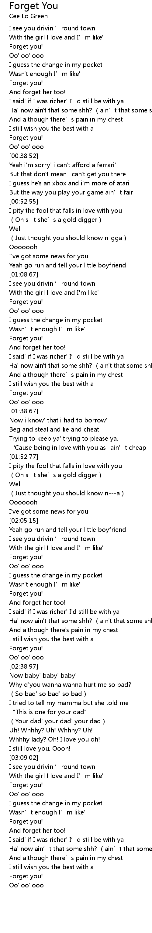 | [00:35.72] | Forget you! |