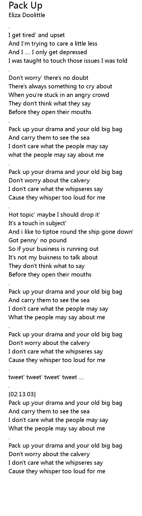 Pack up your drama and your old big bag |