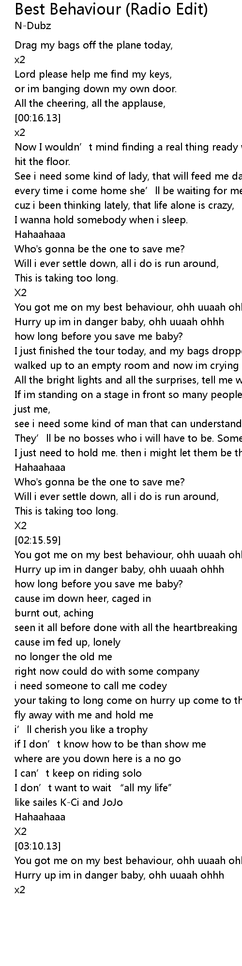 | [03:15.26] | You got me on my best behaviour, ohh uuaah ohhh |